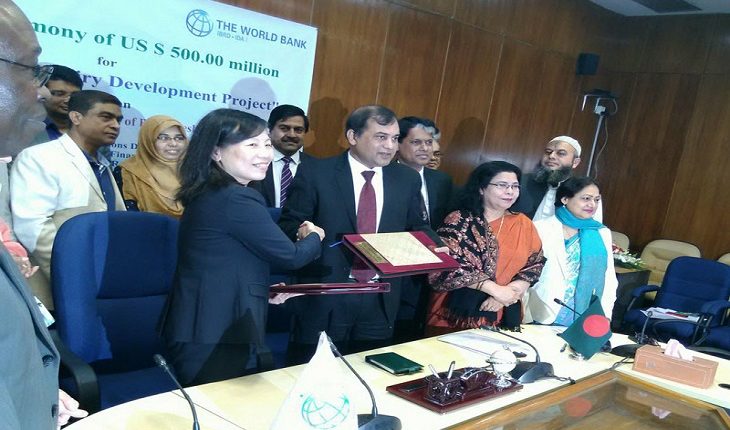 বিশ্বব্যাংকের ভারপ্রাপ্ত কান্ট্রি ডিরেক্টর ডানড্যান চেন এবং অর্থনৈতিক সম্পর্ক বিভাগের (ইআরডি) সচিব মনোয়ার আহমেদ এই চুক্তিতে স্বাক্ষর করেন।