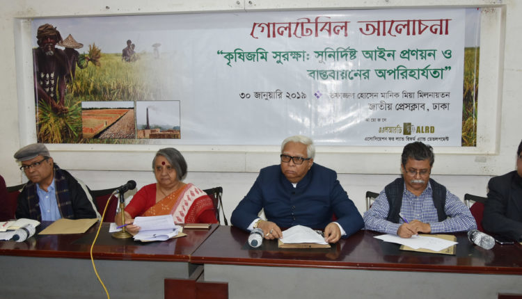 কৃষিখবর প্রতিবেদক : বাংলাদেশকে মধ্যম আয়ের দেশে পরিণত করতে হলে দেশের কৃষি জমি রক্ষা করা জরুরি হয়ে পড়েছে বলে অভিমত ব্যক্ত করেছেন বিশেষজ্ঞরা। তারা বলেছেন, কৃষকদের হাতে পর্যাপ্ত অর্থ থাকার ব্যবস্থা করতে হবে। কৃষকদের হাতে প্রচুর পরিমাণে অর্থ না থাকলে স্থানীয় বাজার কখনও চাঙ্গা হবে না। আজ বুধবার জাতীয় প্রেসক্লাবের তোফাজ্জল হোসেন মানিক মিয়া মিলনায়তনে অ্যাসোসিয়েশন ফর ল্যান্ড রিফর্ম অ্যান্ড ডেভেলপমেন্ট-এএলআরডি আয়োজিত ‘কৃষি জমি সুরক্ষা: সুনির্দিষ্ট আইন প্রণয়ন ও বাস্তবায়নের অপরিহার্যতা’ শীর্ষক গোলটেবিল আলোচনায় বক্তারা এ কথা বলেন।